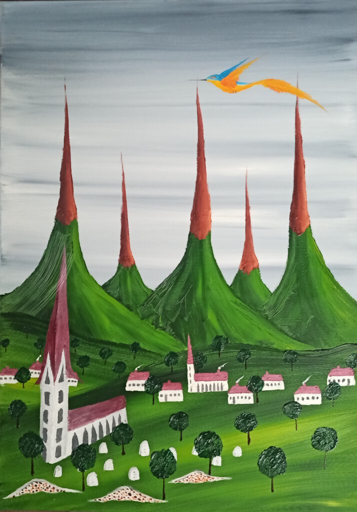 Schiefe Kirche 4 ÖL auf Leinwand