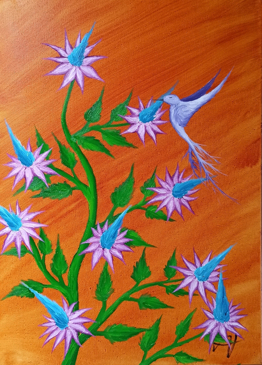 Kolibri und Blumen/ Hummingbird and flowers, Canvas 70×50 cm