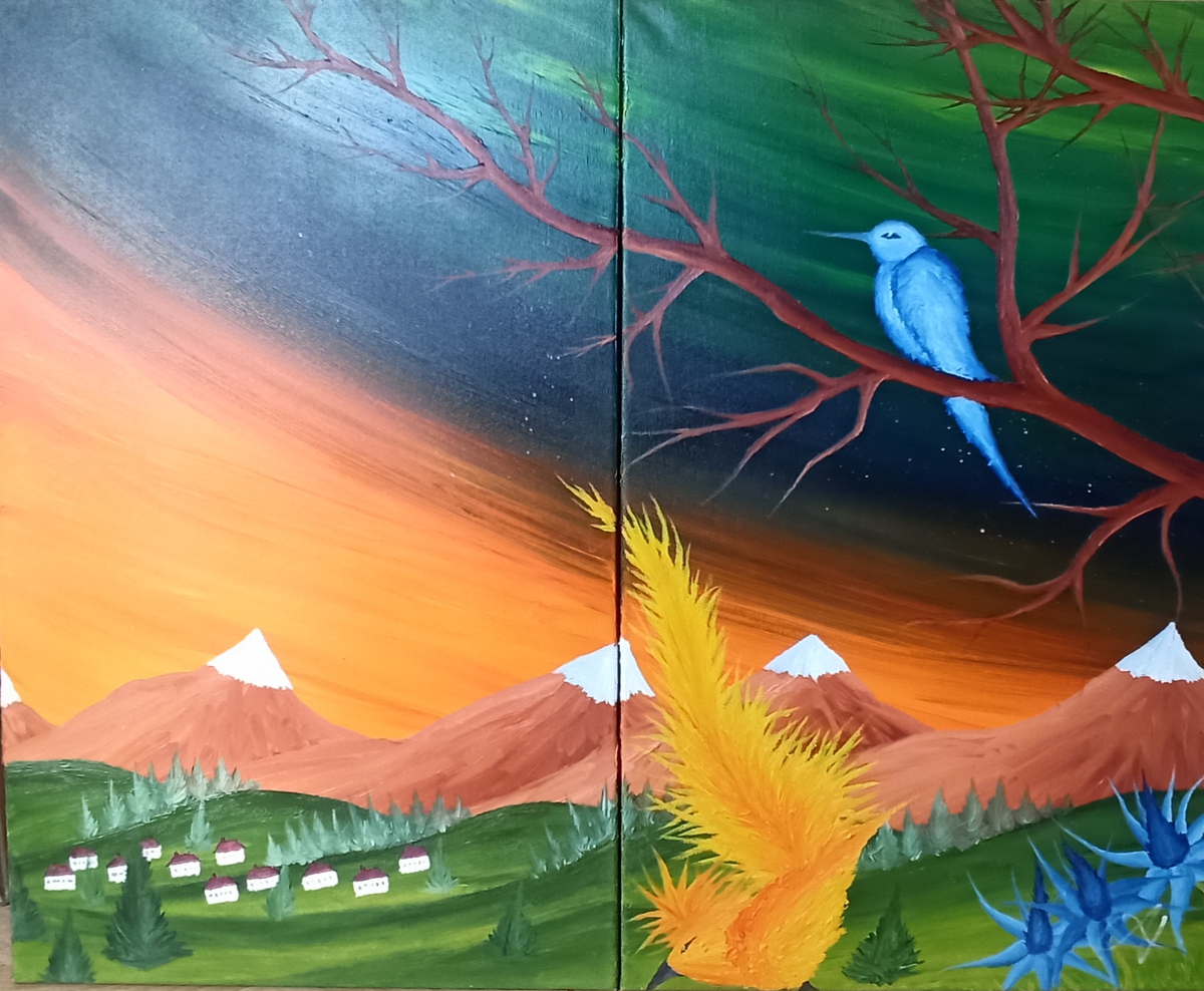 Blauer Vogel/ Blue Bird, canvas 70×50 cm