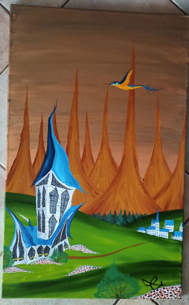 Schiefe Kirche 3 ÖL auf Leinwand