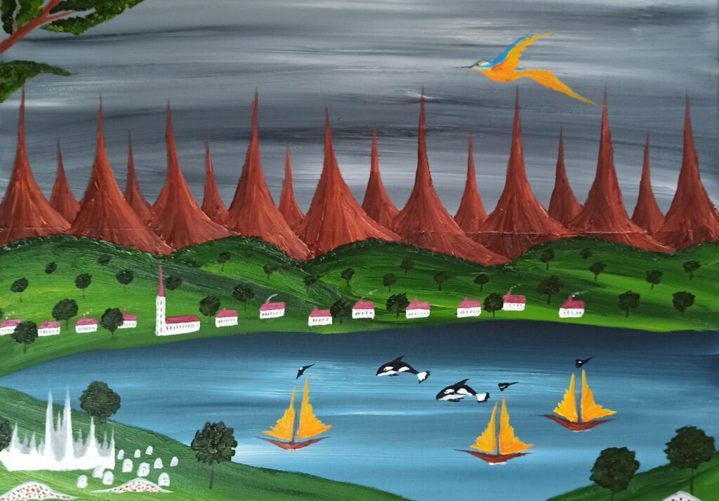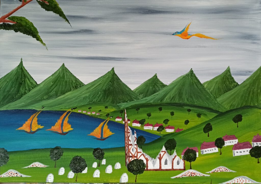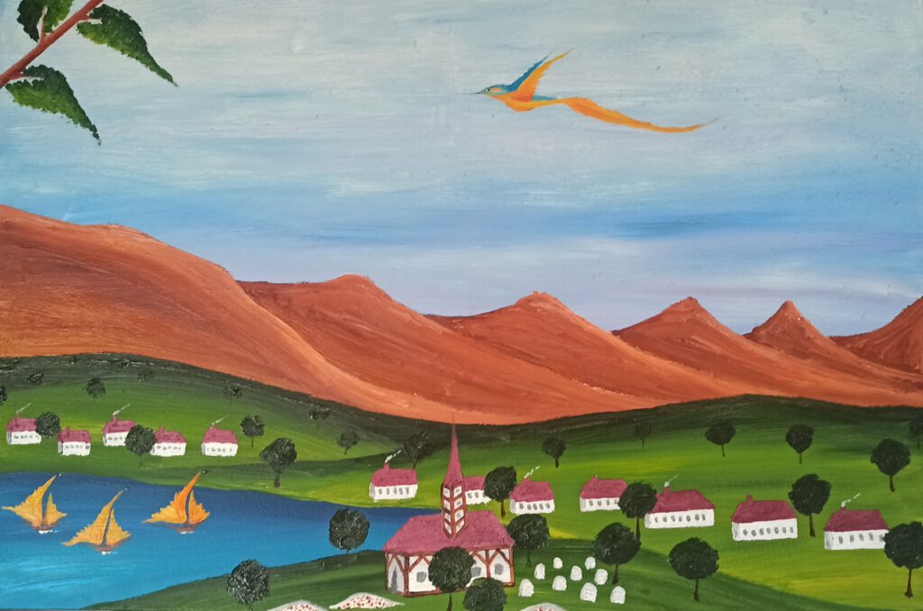 Schiefe Kirche 2 ÖL auf Leinwand