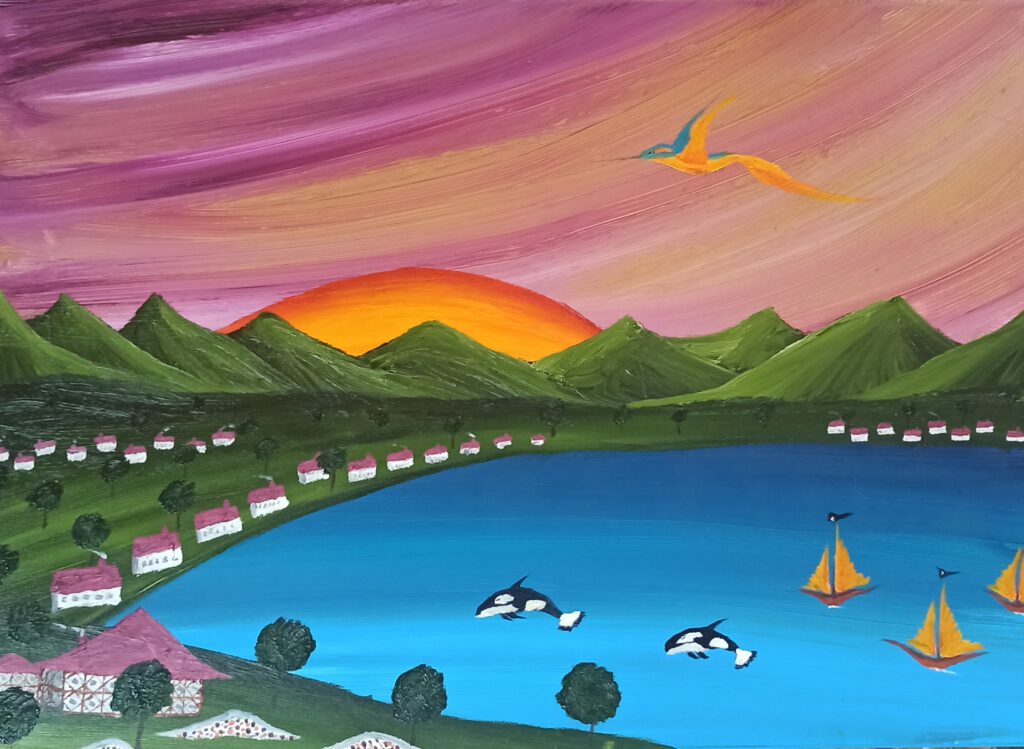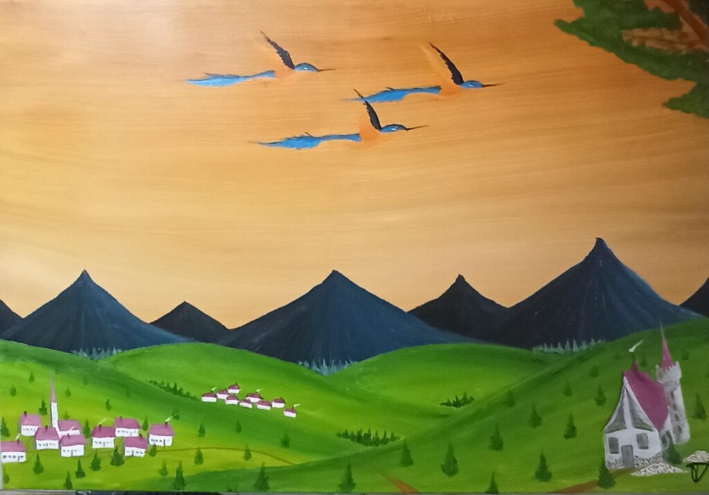 Rosa Berge ÖL auf Leinwand